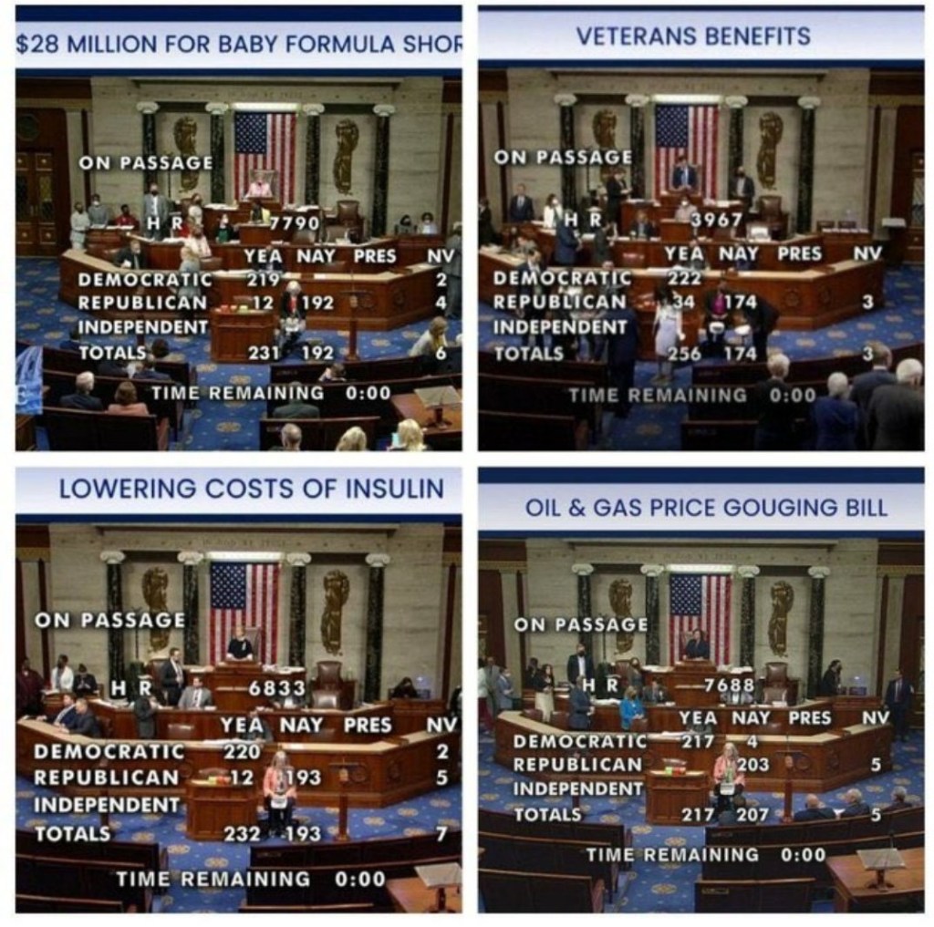 They don’t care about you. Need proof? They stood in the way of the COVID relief for those in need during the pandemic. They stopped the Child Tax Credit which has significantly brought down childhood poverty. They have stood in the way of common sense gun control. They voted against initiatives to prevent price gouging at the gas pump by corrupt oil and gas companies. They voted against initiatives to relieve the baby formula shortage. They voted against expanded care for veterans. They voted against investigating the violence caused by white supremacists. They defund public education. They stand in the way of improved infrastructure for all.